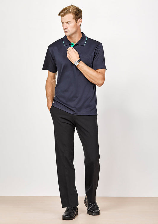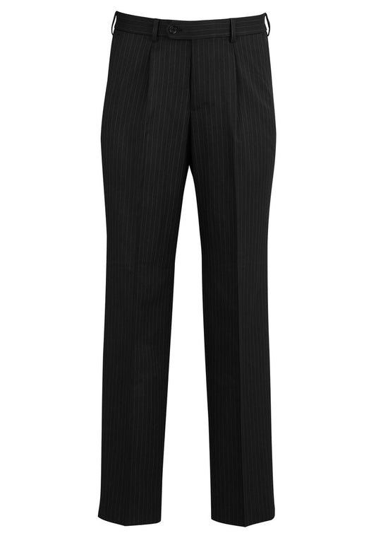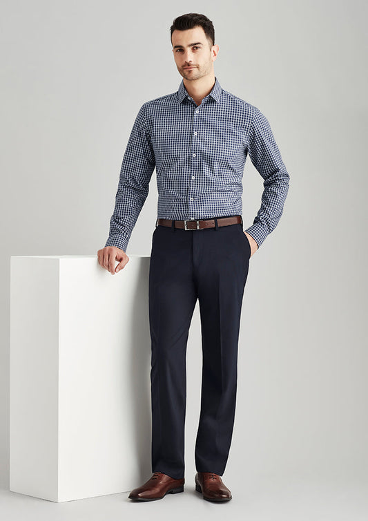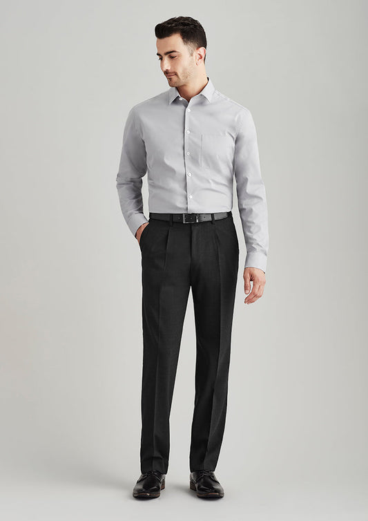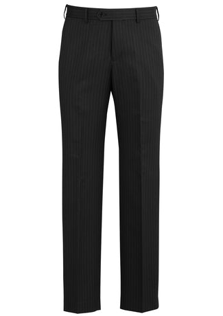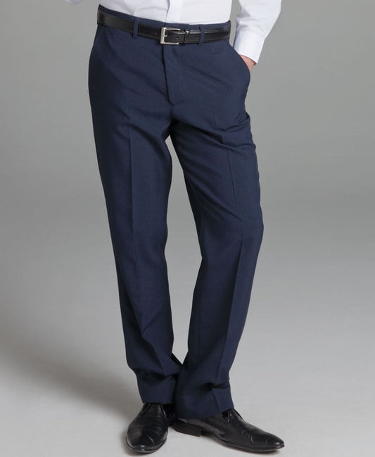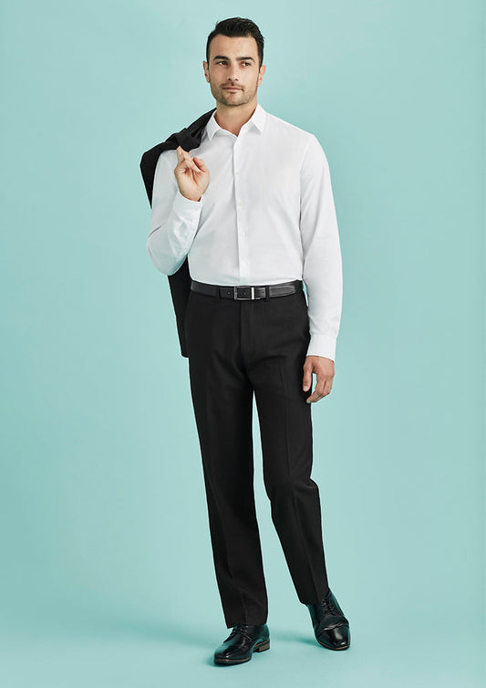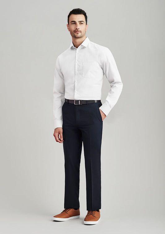 Feature Men's Flat Front Trouser Concealed Comfort Waist Angled Side Pockets Jet Back Pockets Coin...