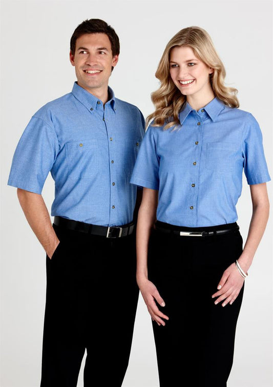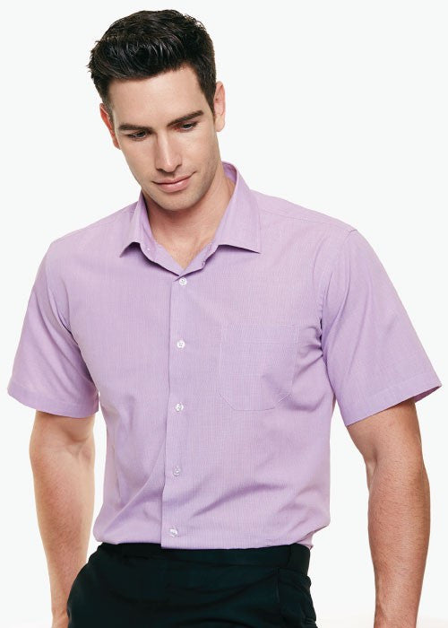 65% polyester 35% cotton yarn dyed multi stripe, Tapered fit, Fashion collar , Short sleeves , Single...