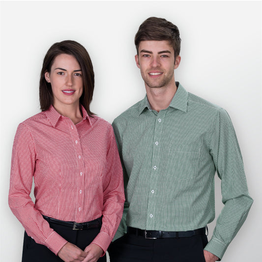 100% cotton yarn dyed gingham , Tapered fit , Fashion collar , Single chest pocket...