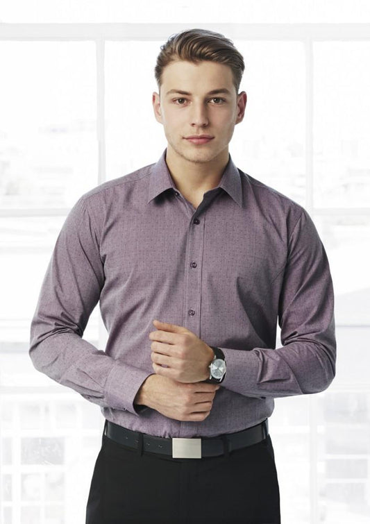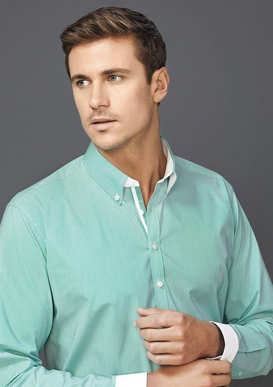 Feature Men's Long Sleeve Gingham Shirt Career Contemporary Fit Placket Front Classic Collar Convertible Cuff...