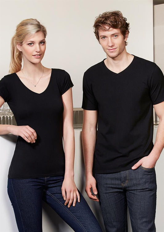 Mens V-neck T-shirt. 2-layered stretch rib in the neck. Product Specifications Cotton V-Neck Tee 2-layered...