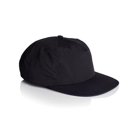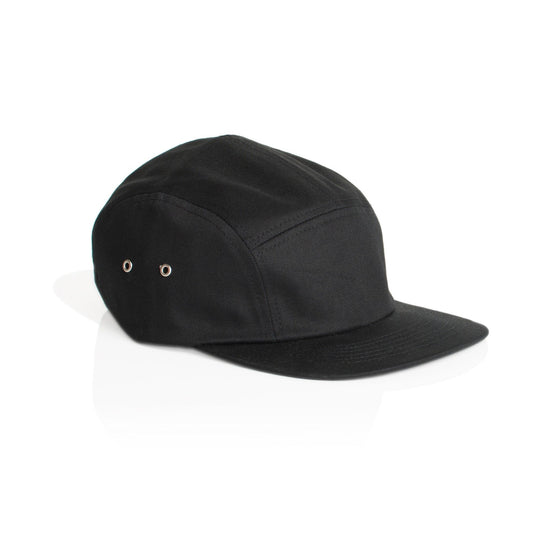 Low profile five panel capAdjustable plastic fastener, metal side eyeletsMid weightFlat Peak100% cottonOne size fits...