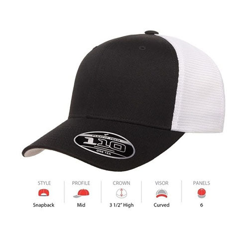 Lower-profile snapback capAdjustable plastic fastener, tonal under-peak lining, mesh backMid weightFlat Peak100% cotton front and...