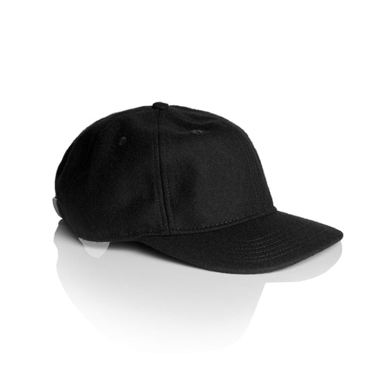 Lower profile, unstructured six panelAdjustable fastener with metal clasp, tonal under-peak liningMid weightFlat Peak50% wool...