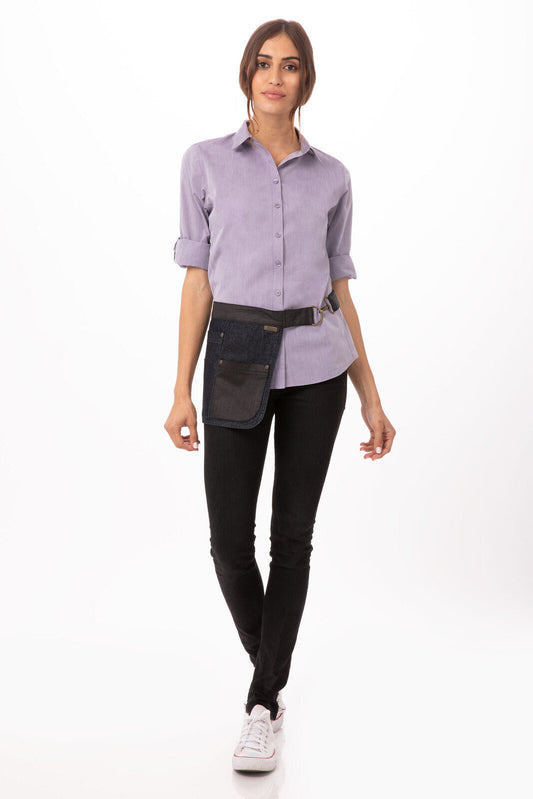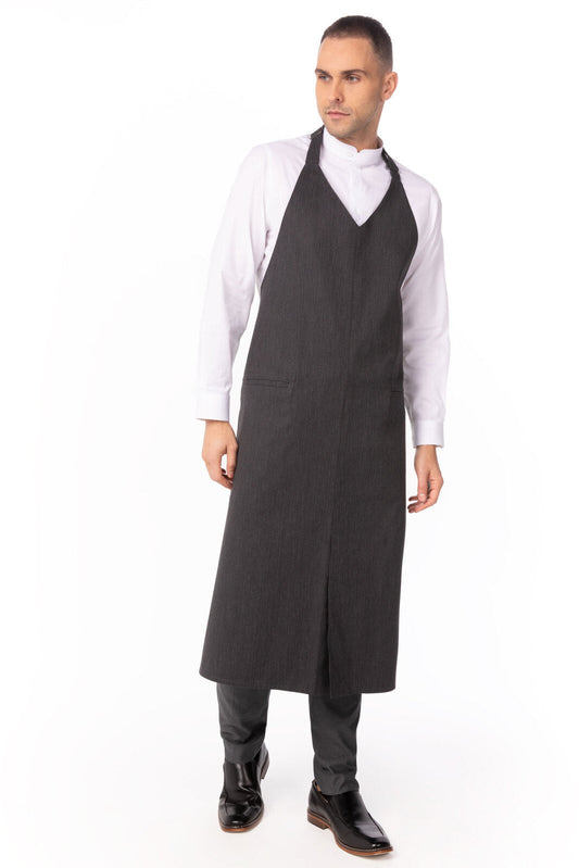 FABRIC 65% Polyester, 35% Cotton Twill 190 GSM FEATURES Unique chambray statement stripe apron* Contrast...