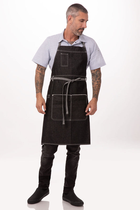 Available in black or indigo blue 100% Cotton 280 g Contrast tape ties Contrast topstitching...