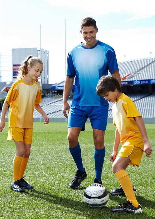 Feature Kids Soccer Panel Shorts. Kids Cut Sports Shorts. (Available in Unisex Cut + Matching...