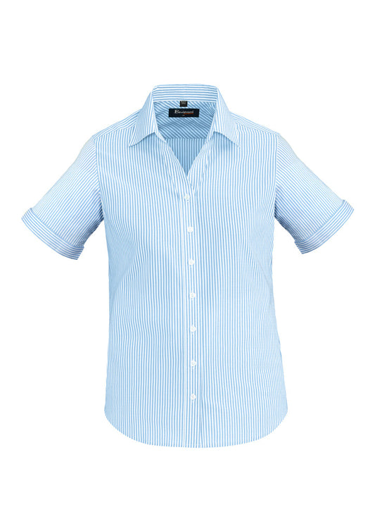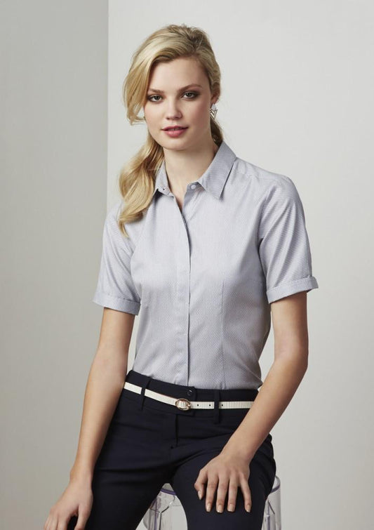 Feature Women's Short Sleeve End On End Shirt Casual Slim Fit Double Fold Front Classic...