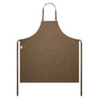 Duck canvas, adjustable shoulder strap, YKK metal strap adjuster, front patch pocket, self fabric waist and neck ties, top stitch detailing, pre-shrunk to minimise shrinkage.