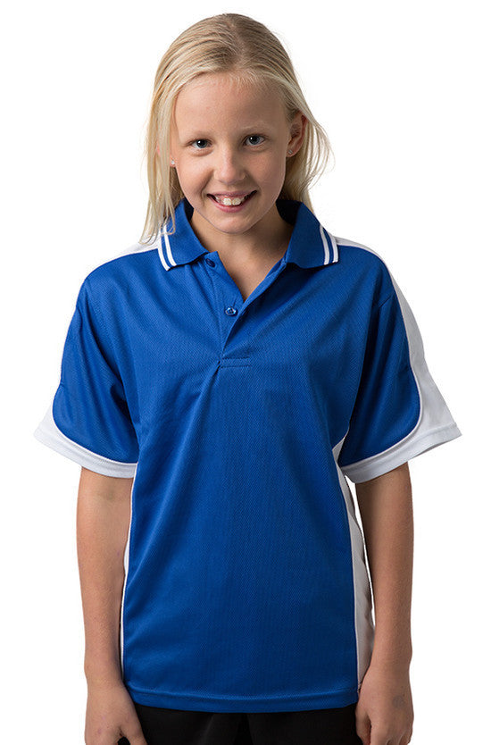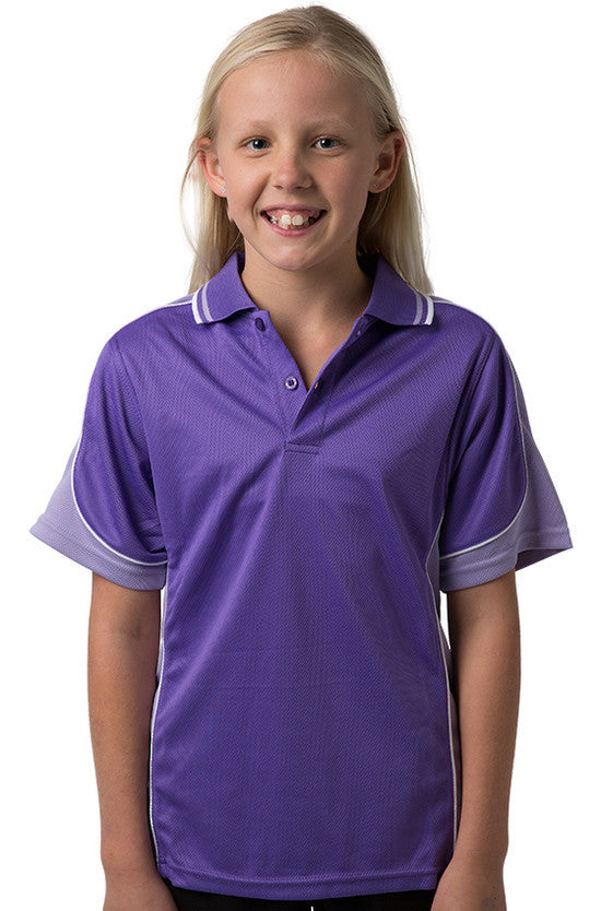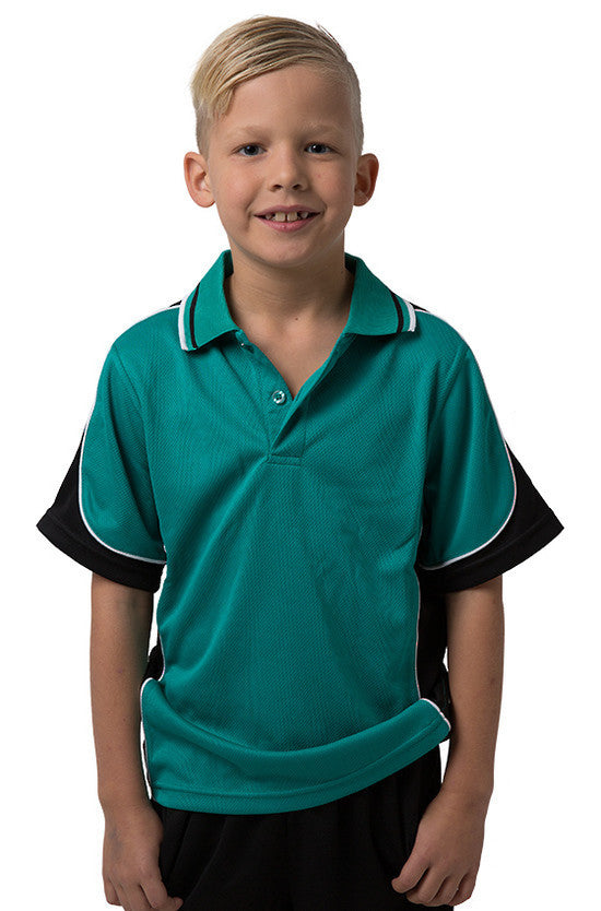 Kids Cooldry 100% Polyester micromesh moisture management polo with shoulder & side panels with contrast piping & striped collar