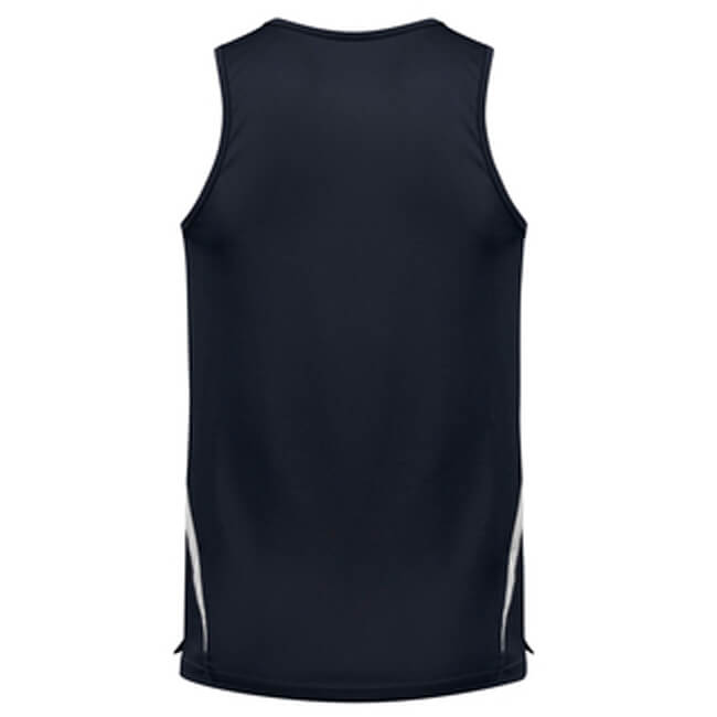 - Contrast twin stripe on shoulder and curved panel from raglan curve to back of singlet
