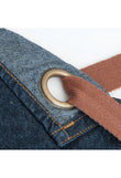 - Available in blue, black denim