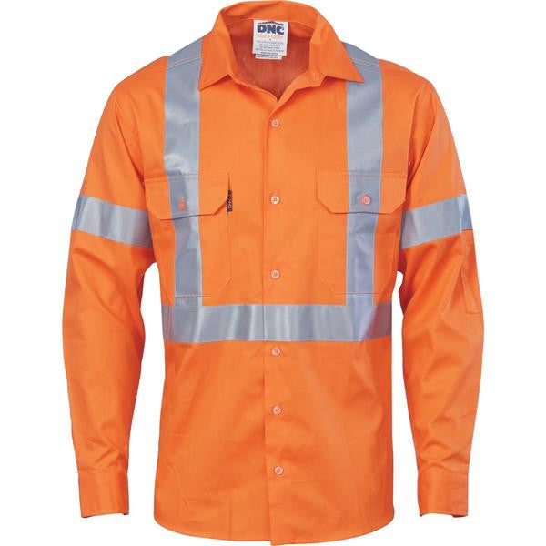 155 gsm lightweight cotton. Under arm cotton mesh vents. Twin button down flap pocket and sleeve pen pocket. Cross back CSR reflective tape. NSW Rail Compliant.