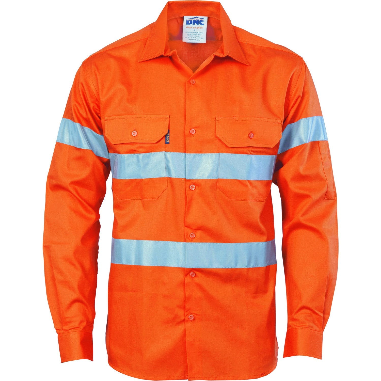 190gsm HiVis drill shirt with hoop style CSR R/Tape, L/S.