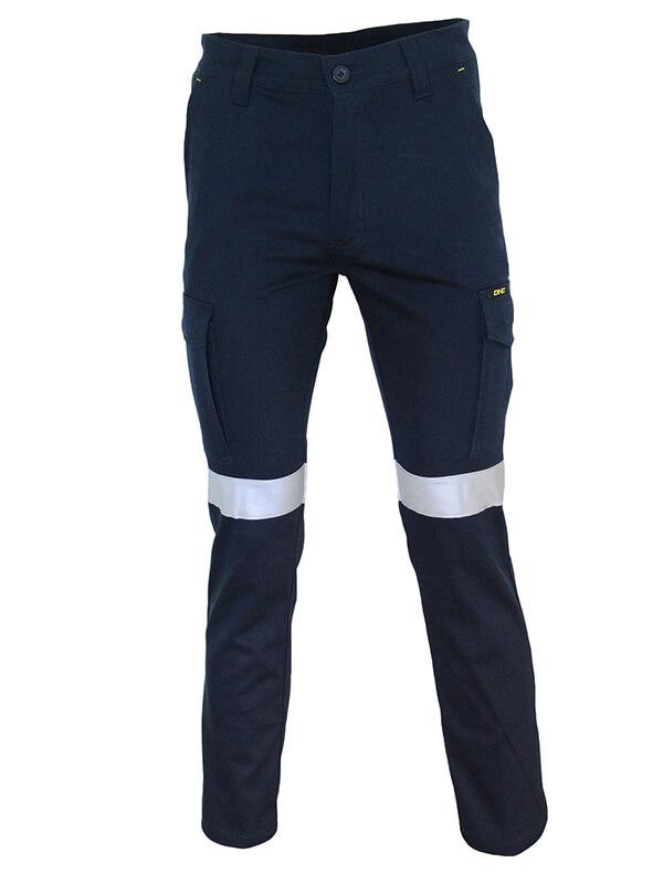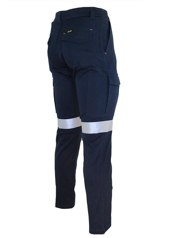 Fabric: 260gsm 97% Cotton, 3% Elastane. Stretch & durable fabric provides superior comfort & flexibility. Modern slim fit, workwear in fashion. 2 side pockets, one side contains large flap cargo pocket, the other a tool and mobile phone pockets, 2 flap back pockets, Bartacked at all stress points to add durability. Heavy duty nylon zipper. One hoop of 50 washes SFR (SupaFlex Reflective) Tape on leg stretches with the fabric for all day ultra freedom of movement.