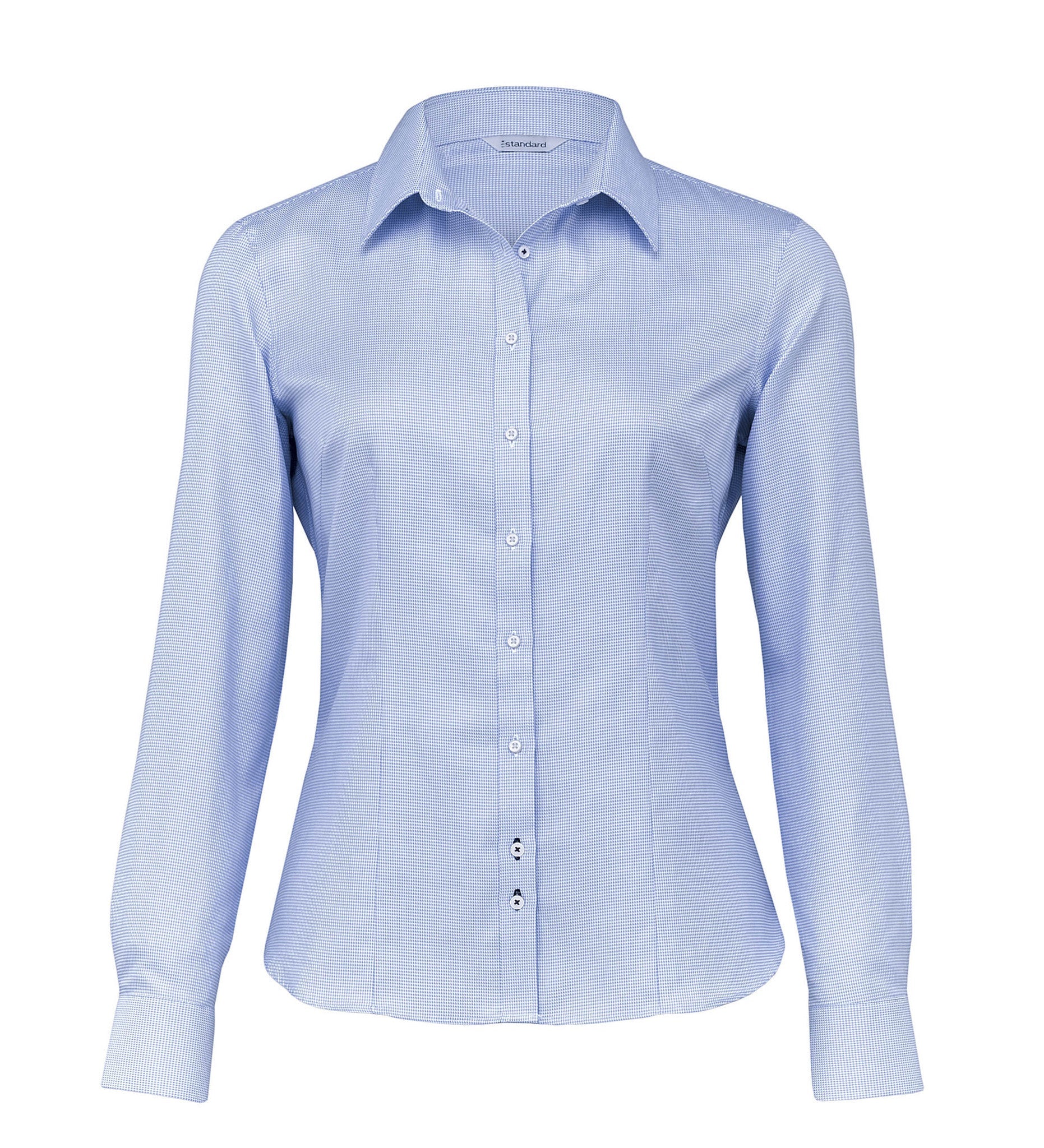 100% cotton yarn dyed houndstooth, Tapered fit , Fashion collar , Long sleeves , Shaped body detailing front and back , Contoured hemline , Contrast stitch detailing on selected buttons.