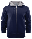 Men’s hooded jacket with fleece lining on the inside. Metal zip front, zipped chest pocket and two single welt pockets. Rib at bottom hem and sleeve cuffs. Contrast coloured drawstring and hood.