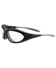 - Polycarbonate lens and frame, with vented hard rubber and dual foam seals for dust generating working conditions