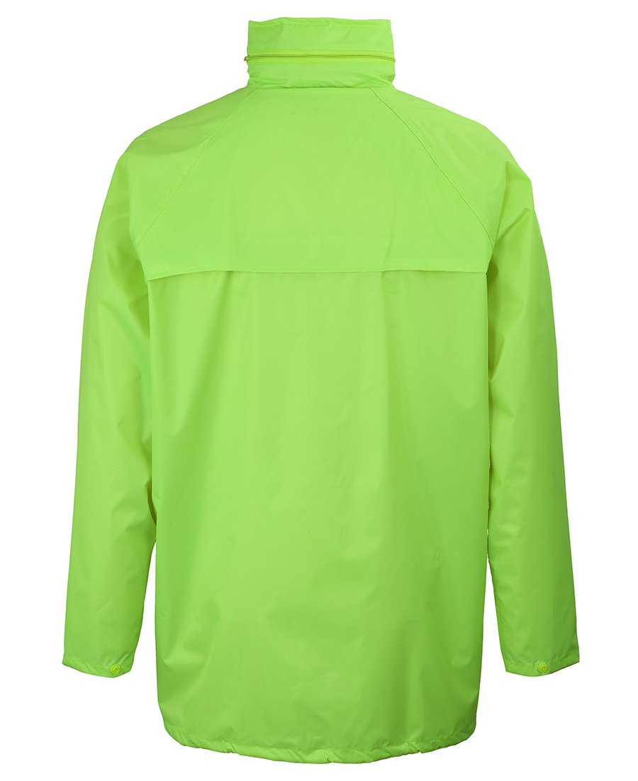 - Jacket: Back yoke with concealed mesh for breathability, Concealed hood, Two front pockets; Sleeve opening with plastic snap button, drawstring at hem for adjustability