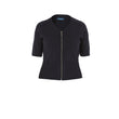 - Short sleeve, zip front cardigan.