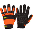 Spandex foam backed with Neoprene knuckle panel provides increased flexibility. Premium durable synthetic leather palm, reinforced foam padded inner palm for Anti-Vibration. Reinforced patch on thumb & finger tips for added durability & protection, elastic cuff with adjustable rubber/velcro for the perfect fit. Comply with EN388-3131