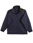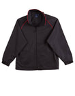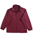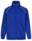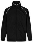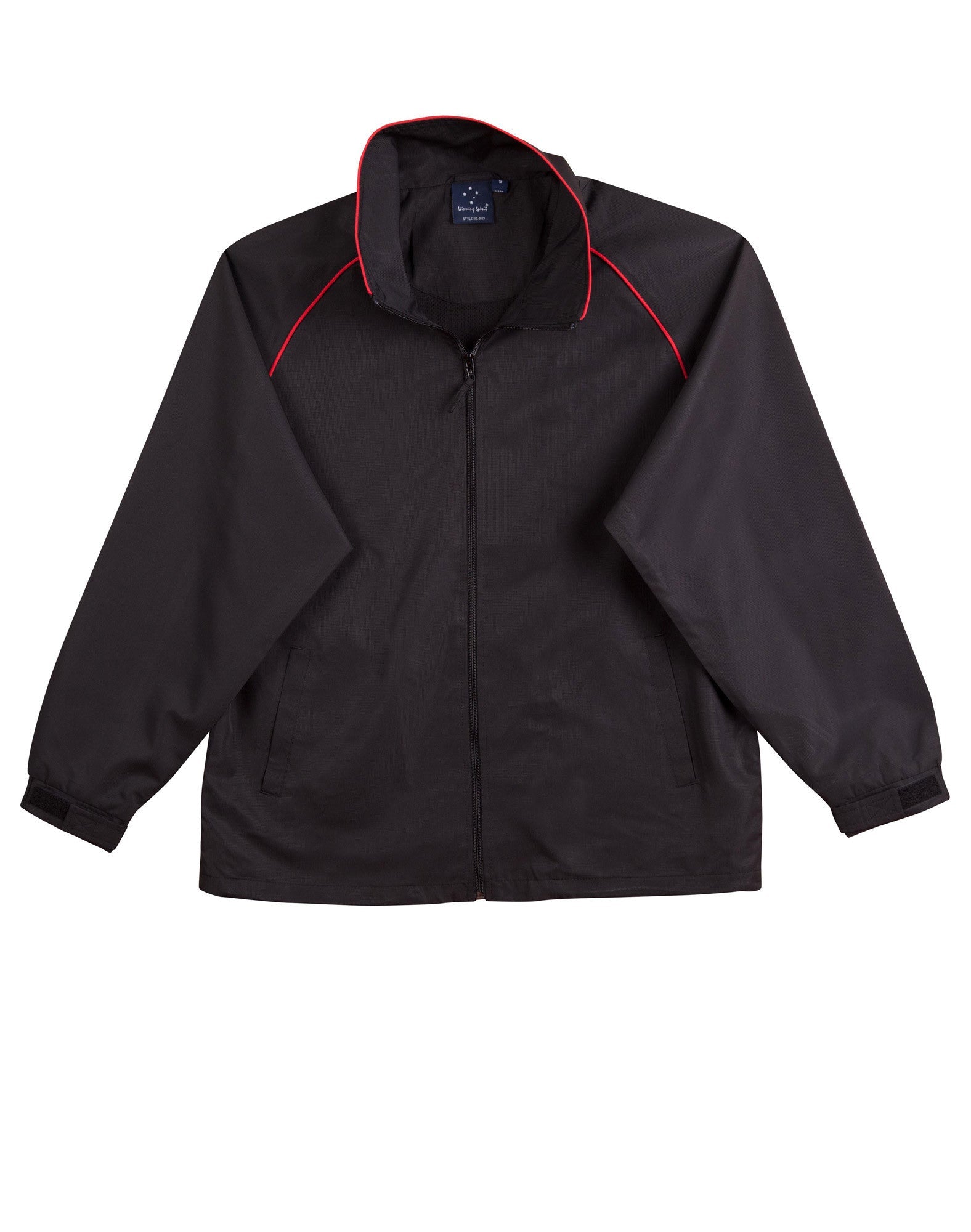 Description: Light weight jacket with contrast raglan sleeves and piping on collar and sides. Two side pockets. Front zipper.