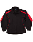 Fabric: Polyester Pongee,Mesh Lining. Shell/Lining: 100% Polyester Breathable mesh panels under arm and on sides, contrast piping along mesh panels. Contrast panels on shoulders and sleeves,front and back. Raglan sleeve. Sleeve lined with 100% Polyester .
