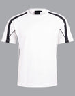 Description: Breathable mesh panels under arms & on sides. Short sleeves. Contrast panels and piping on shoulders and sleeves -- front and back.