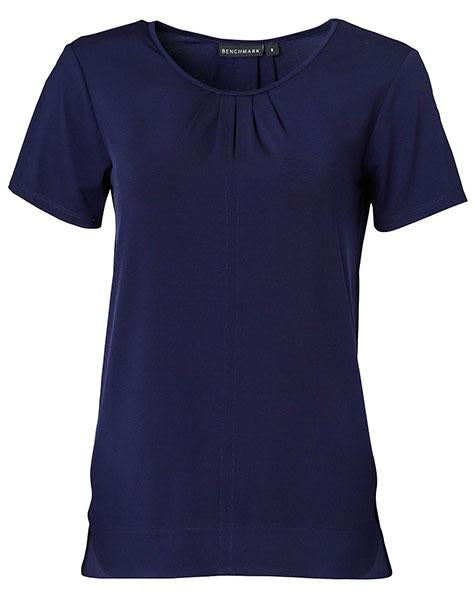 Style:The Julia is a round neck knit top with feature front pleats, front keyhole and fold back hemline with side splits. The back centre neckline also has feature tuck pleats.